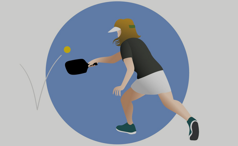 Pickleball is a combination of tennis, badminton and table tennis, played on a field the size of a badminton court with paddles which look like oversized ping pong paddles and a hollow hard plastic ball with holes in it, resembling a toy for dogs.