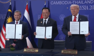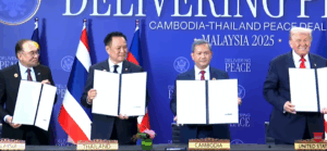 KUALA LUMPUR — President Donald Trump presided over the signing of a long-delayed peace accord between Thailand and Cambodia in Kuala Lumpur on Sunday, hailing it as “a monumental step for Southeast Asia.” The agreement, formally named the Kuala Lumpur Peace Accord, calls for troop withdrawals, landmine clearance, and the creation of a joint observer team to monitor the disputed frontier.